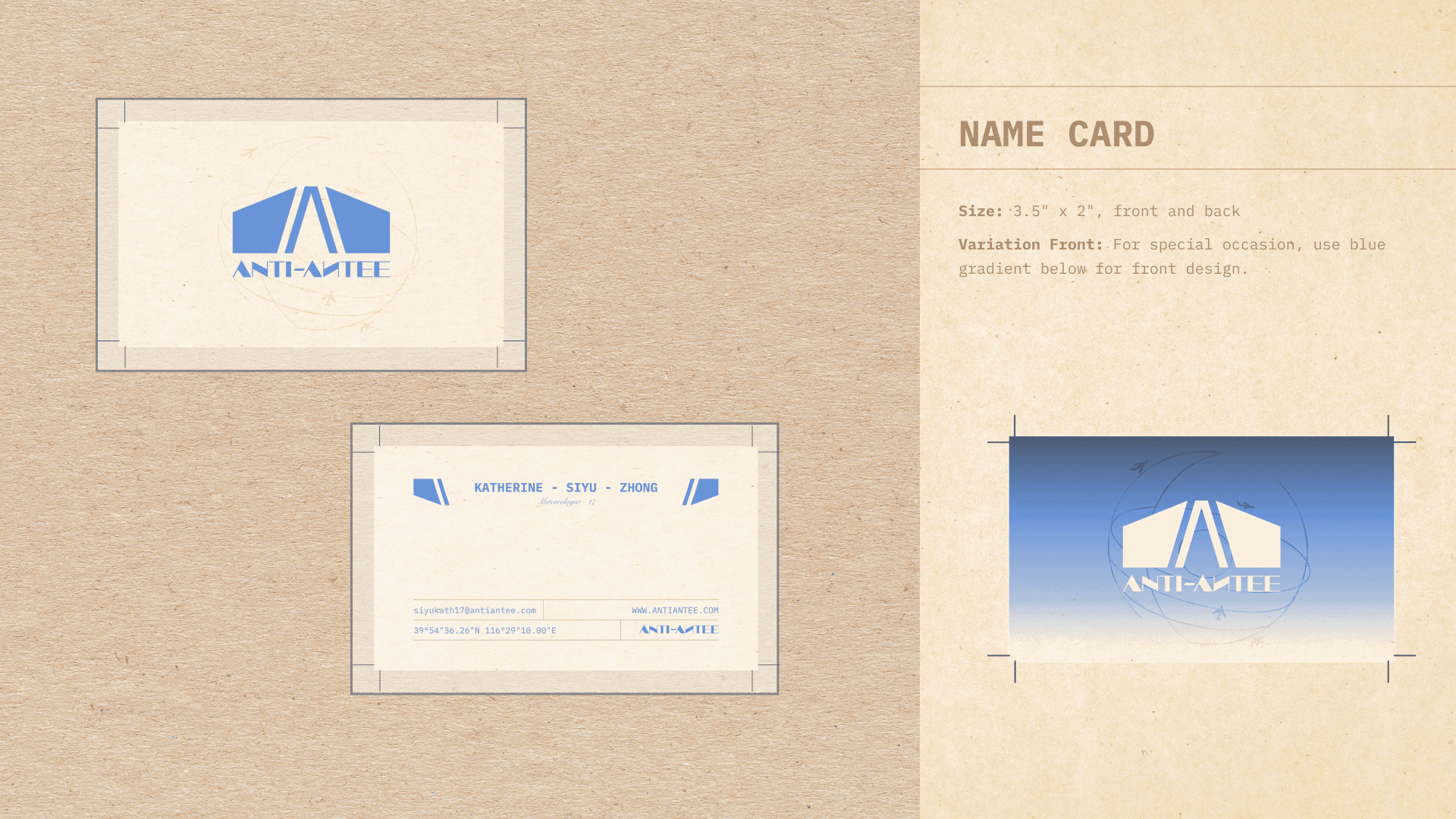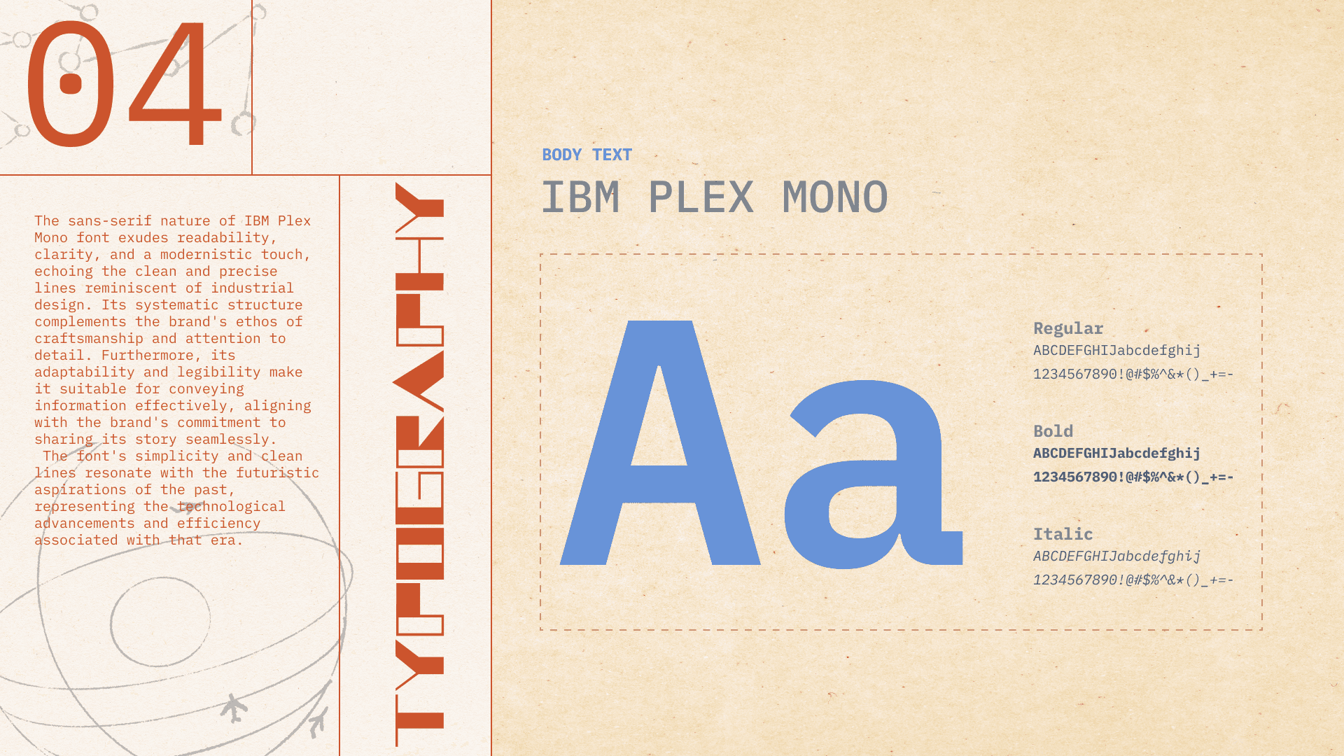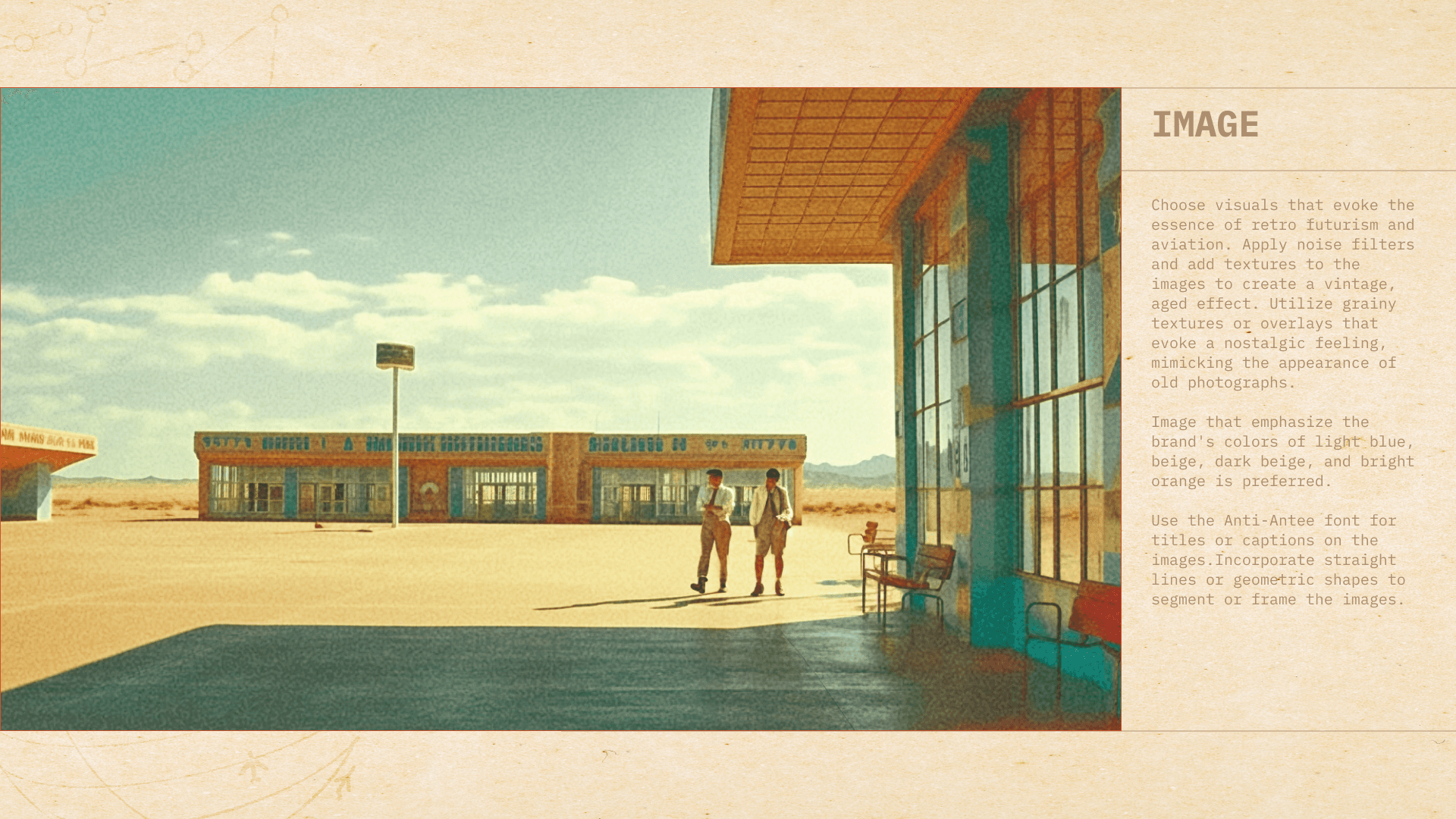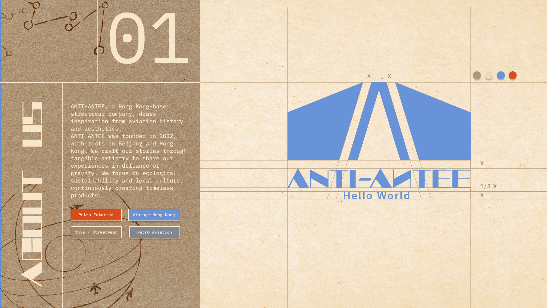 The specially designed font, Anti-Antee, serves as the distinctive title font for the brand. This font embodies the brand's futuristic and industrial aesthetic. Its geometric design juxtaposes thin lines with bold shapes, creating a striking contrast that evokes a sense of modernity and edginess. This unique font encapsulates the brand's identity, reflecting the fusion of innovative design elements inspired by retro futurism and aviation.