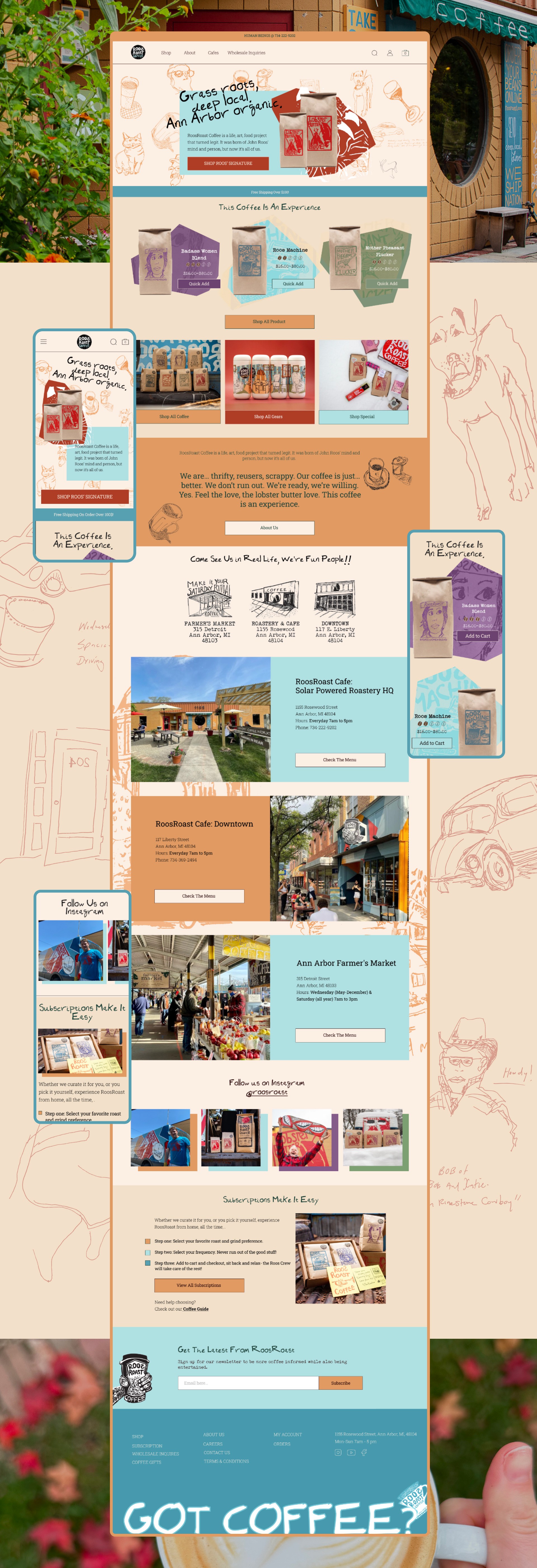 RoosRoast Coffee is a signature local coffee shop in Ann Arbor, MI with two locations and are available in many different grocery stores. At roosroast.com they have a gradual rise in e-commerce, but they want to make it even better.